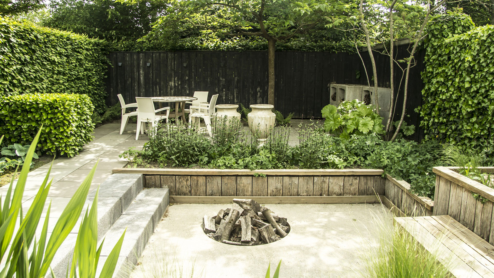Add atmosphere and function with integrated garden lighting, water features, and custom-built structures.
