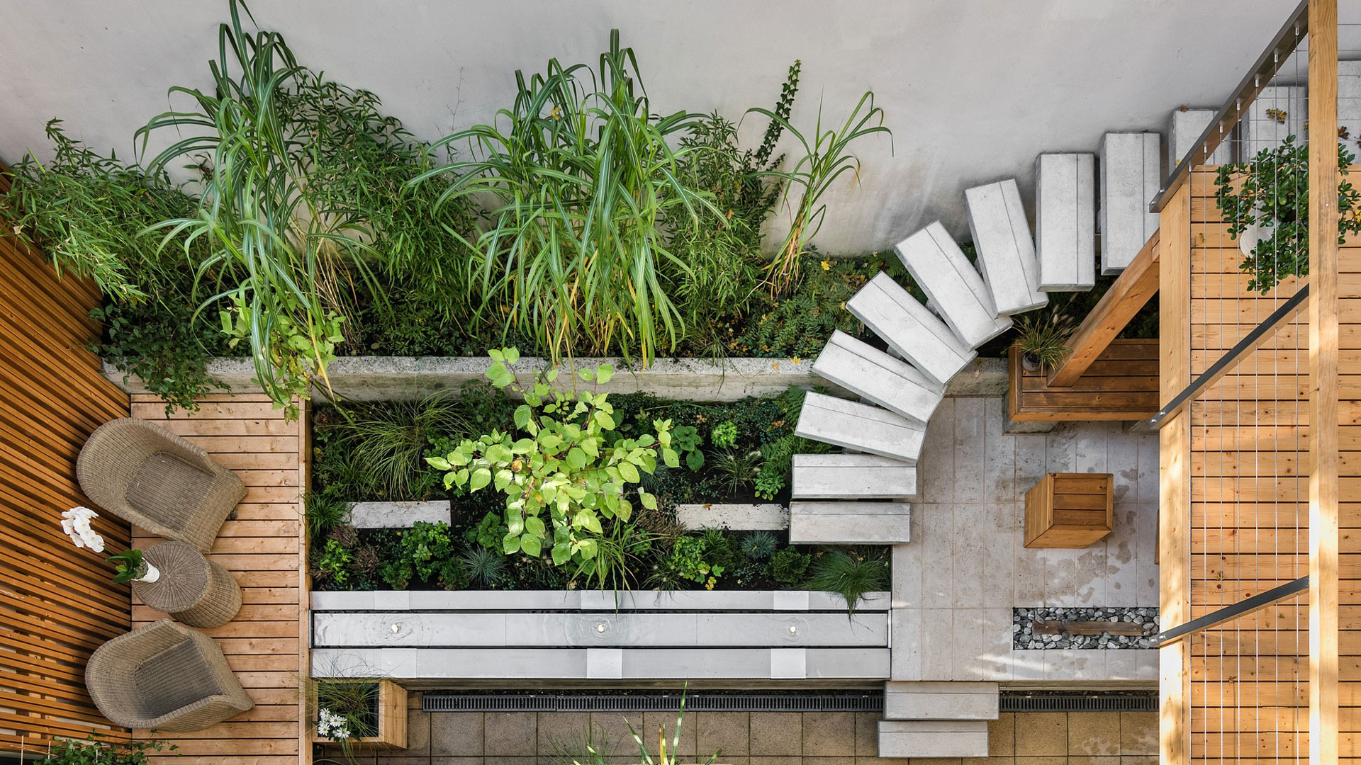 Add atmosphere and function with integrated garden lighting, water features, and custom-built structures.